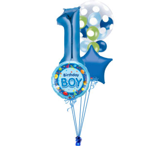• Created with 2 Happy Birthday foil balloons and 3 solid colour foil balloons.