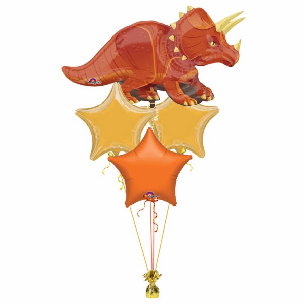 - Created with 1 Triceratops foil balloon and 3 solid colour foil balloons.
